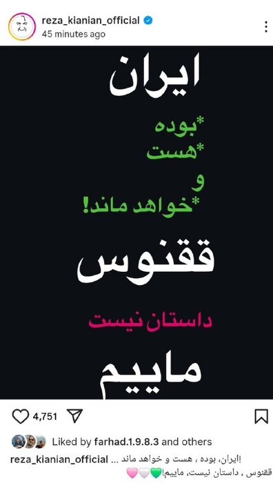 رضا کیانیان : ایران، بوده، هست و خواهد ماند!