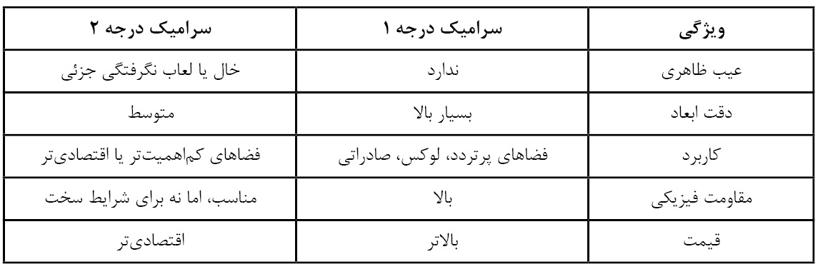 راههای تشخیص سرامیک درجه ۱ از درجه 2
