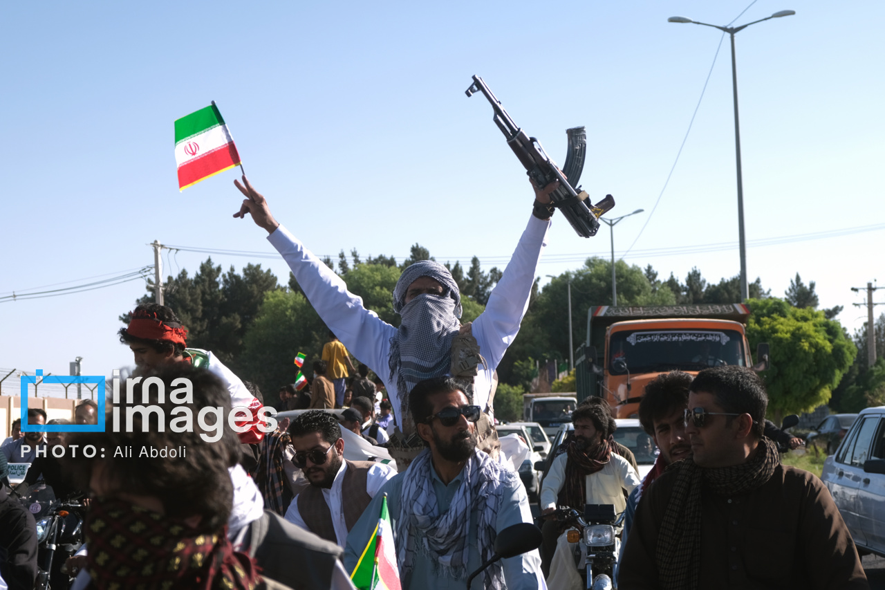 ایرنا/ جمعی از جوانان اهل سنت زاهدان با برگزاری رژه موتوری و خودرویی در سطح شهر، عصر یکشنبه (۲۶ خرداد ۱۴۰۴) ضمن محکومکردن جنایات رژیم صهیونیستی، حمایت خود را از نیروهای مسلح جمهوری اسلامی ایران اعلام کردند و جلوهای از انسجام مردمی و اتحاد اسلامی را در جنوبشرق کشور به نمایش گذاشتند.