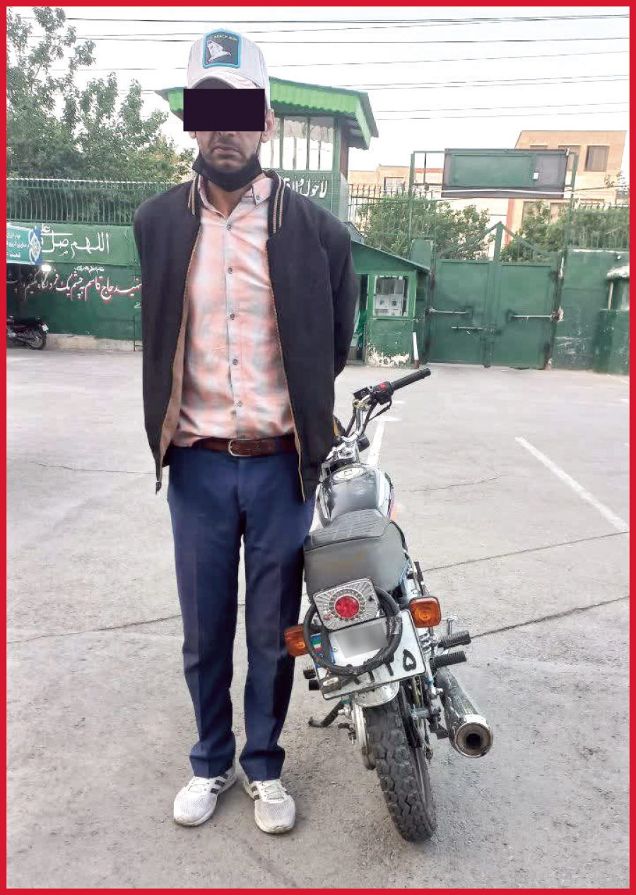 طولی نکشید که با انتقال وی به مقر انتظامی مشخص شد موتورسیکلت وی نیز سابقه سرقت دارد و اردیبهشت از پارکینگ منزلی در بولوار شهید مطهری شمالی سرقت شده است.