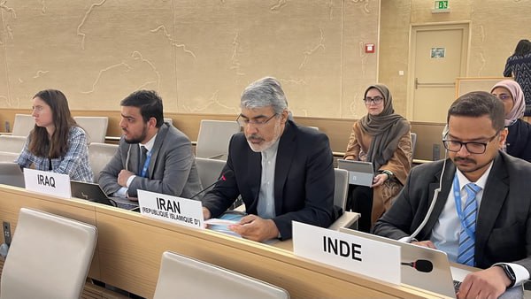 علی بحرینی با قرائت بیانیه ای در جریان پنجاهونهمین نشست شورای حقوق بشر اظهار داشت: از روز جمعه ۲۳ خرداد ۱۴۰۴، رژیم اسرائیل اقدام به حمله نظامی گسترده و از پیش برنامهریزیشدهای علیه کشورمان نمود که تاکنون منجر به شهادت صدها تن از غیرنظامیان، از جمله زنان و کودکان و تخریب گسترده زیرساختهای غیرنظامی از جمله بیمارستانها شده است.