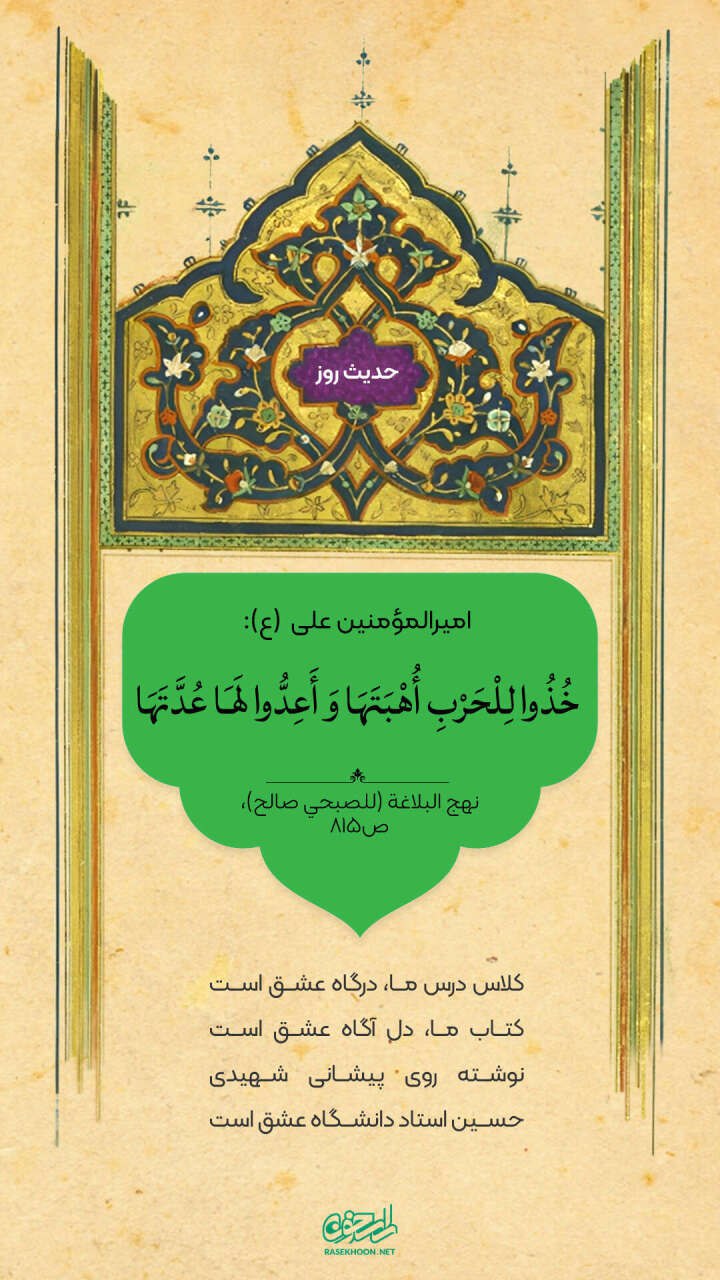خُذُوا لِلْحَرْبِ أُهْبَتَهَا وَ أَعِدُّوا لَهَا عُدَّتَهَا