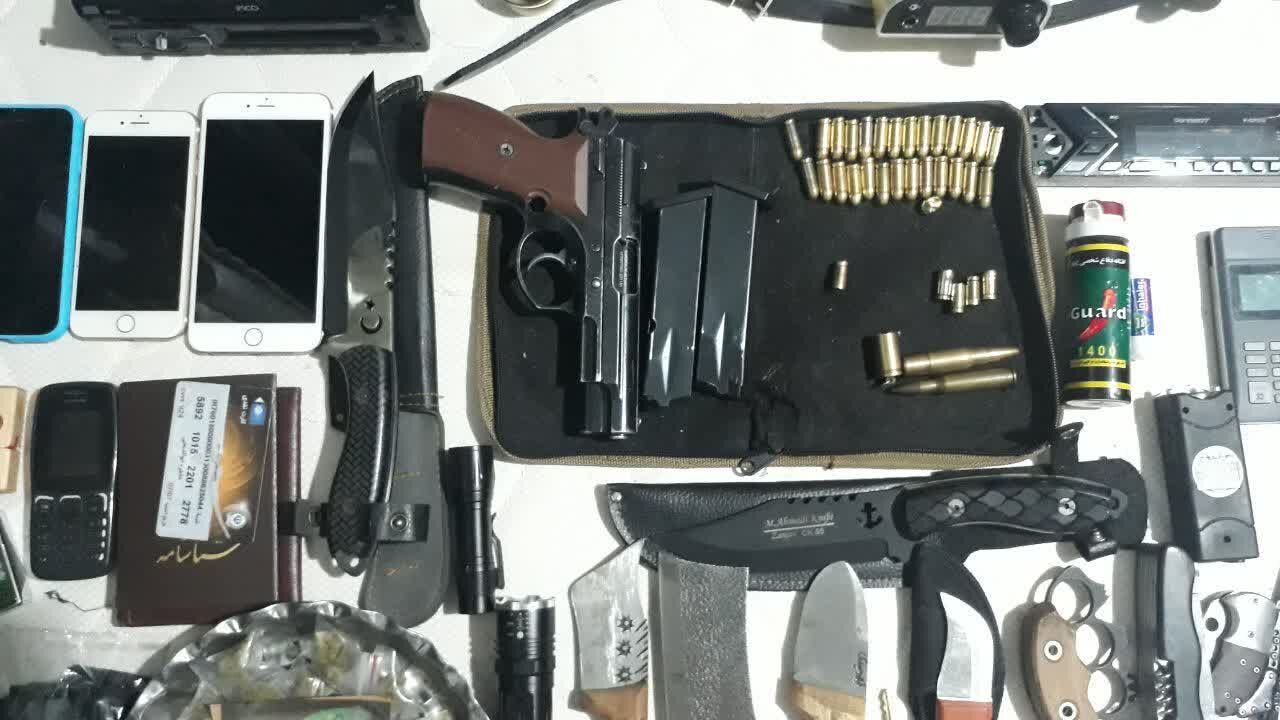 همچنین در این منزل تعدادی زیادی سلاح سرد و اقلام ممنوعه و تعدادی موبایل و مدارک سرقتی نیز کشف شد.