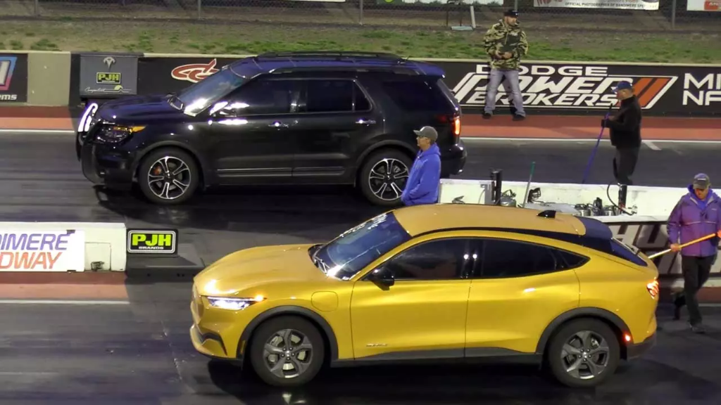 وقتی حرف از درگ خودروی الکتریکی با بنزینی میشود، معمولاً نام تسلا را خواهیم دید اما در این ویدئو شاهد رقابتی تمام فوردی هستیم. در اینجا ابتدا کراساوور الکتریکی موستانگ Mach-E به مصاف یک موستانگ GT میرود و سپس در برابر یک اکسپلورر قرار میگیرد. مشخص نیست Mach-E حاضر در این درگ از چه نسخهای است زیرا هیچ جا در عنوان یا توضیحات ویدئو به این موضوع اشارهای نشده است اما با قضاوت از روی رینگهای خودرو که ۱۸ اینچی خاکستری آلومینیومی هستند، به نظر میرسد نسخهٔ پایه باشد. بااینحال، نمیدانیم این موستانگ الکتریکی محرک عقب است یا چهارچرخ محرک.