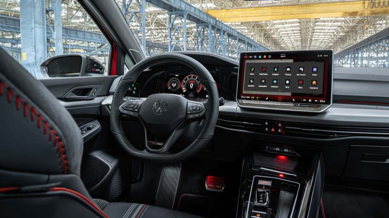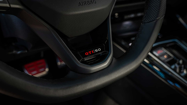 تغییرات کابین اندک است و شامل کمربندهای ایمنی قرمز، دستگیرههای درب آلومینیومی شده تیره و لوگوهای GTI 50 روی قسمتهایی مثل سوئیچ میشود. صندلیها با الگوی شطرنجی آشنا، تزئینات جیر مصنوعی و نوار سبز تزئین شدهاند. با وجود جایگاه برتر این GTI، آپشنهایی مانند نمایشگر هدآپ همچنان هزینه اضافی دارند. فولکسواگن هنوز قیمت این نسخه را اعلام نکرده اما مطمئناً گرانتر از GTI کلاباسپرت خواهد بود که در آلمان از ۵۴,۳۳۰ یورو شروع میشود.
