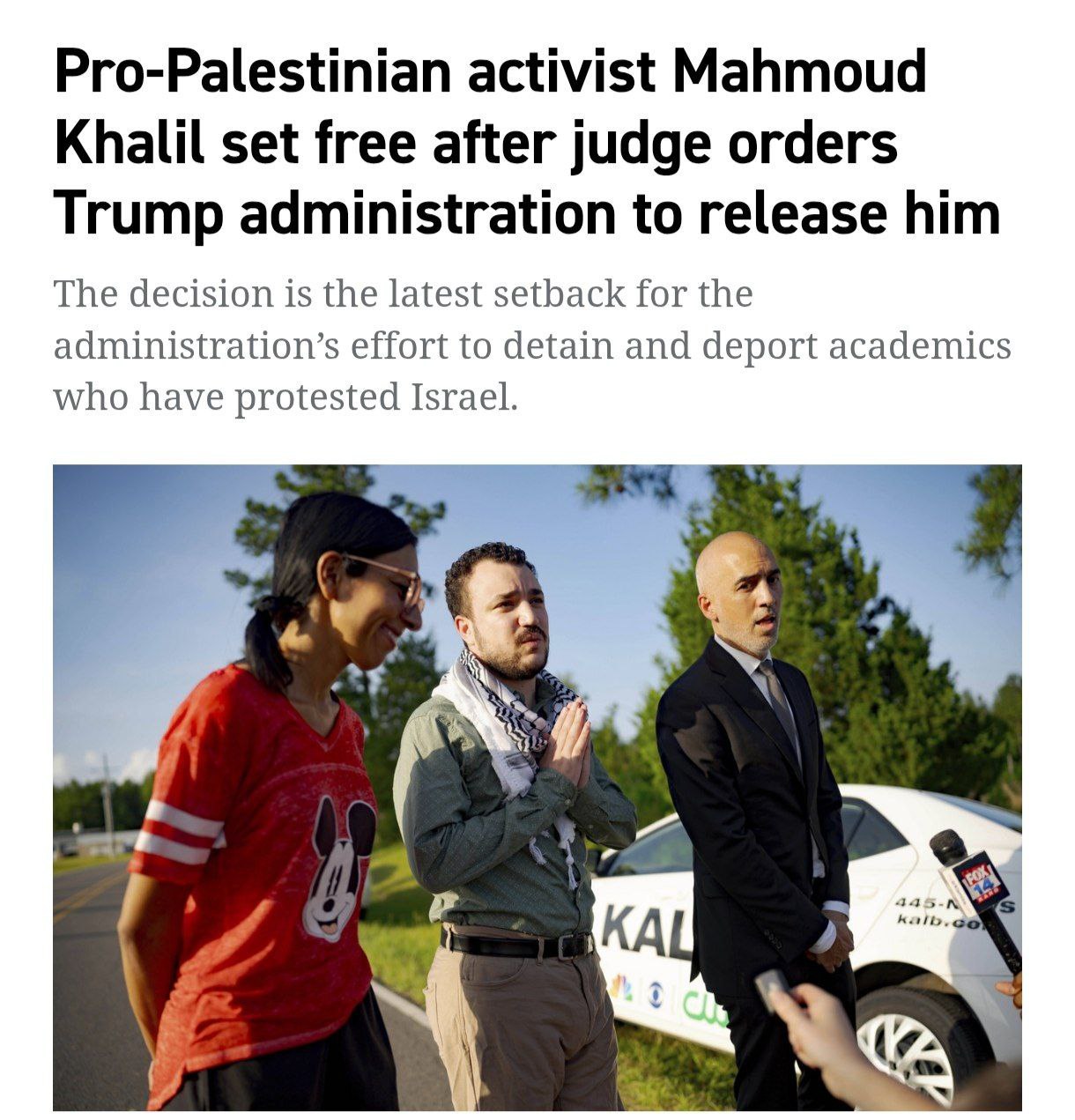 خبرگزاری دانشجو/ محمود خلیل، فعال حامی فلسطین که به مدت بیش از سه ماه توسط دولت ترامپ در بازداشتگاههای مهاجرتی نگهداری میشد، جمعهشب با حکم یک قاضی فدرال در حالی که دولت ترامپ به دنبال اخراج او از آمریکا بود، آزاد شد.