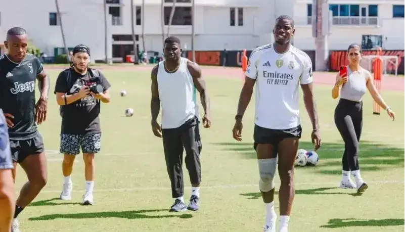 پل پوگبا که از سال ۲۰۲۳ و پس از محرومیت به دلیل دوپینگ، بدون باشگاه بوده و از میادین دور است، با انتشار عکسهایی در فضای مجازی که او را با پیراهن رئال مادرید در حال تمرین زیر آفتاب میامی نشان میدهد، بار دیگر به سوژه اصلی گفتگوها تبدیل شد. او در این عکسها لبخند میزند و جملهای زیر پست اینستاگرامش نوشته است:"فکر میکنم وقتش رسیده."