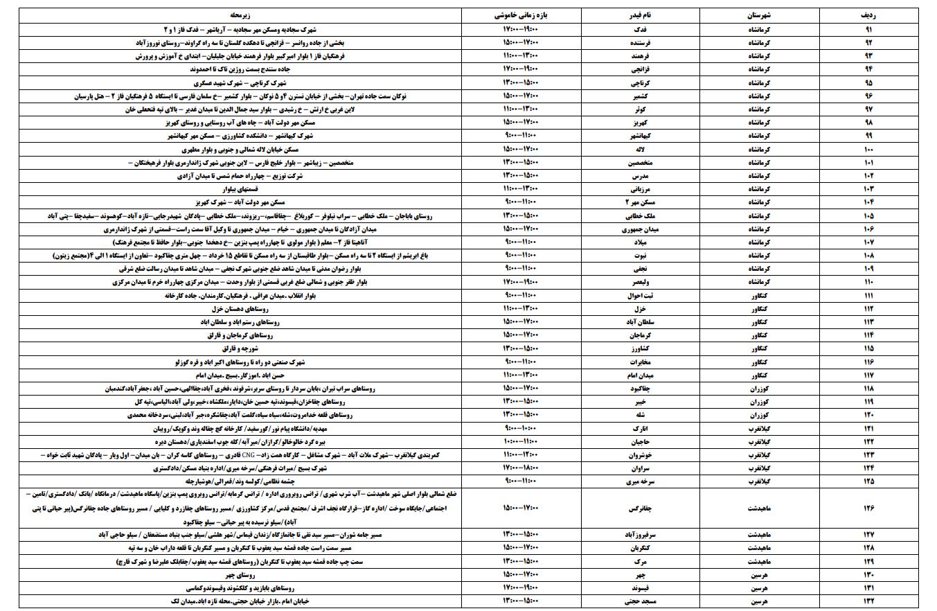 جدول زمانی قطع برق استان کرمانشاه در روز ۲ تیر