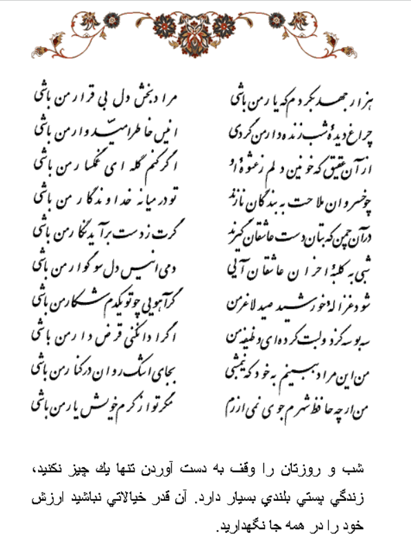 بیتوته/ تشخیص و پذیرفتن خوب و بد از محتوای غزل، بستگی به وضعیت روحی، عاطفی و باور صاحب فال دارد. در هر صورت در هر غزل حافظ بیتی وجود دارد که صاحب فال آن را مناسب آرزو و نیت خود می یابد و همان را به عنوان وصف الحال و جواب حافظ می پذیرد و به آرامش خاطر دست می یابد.