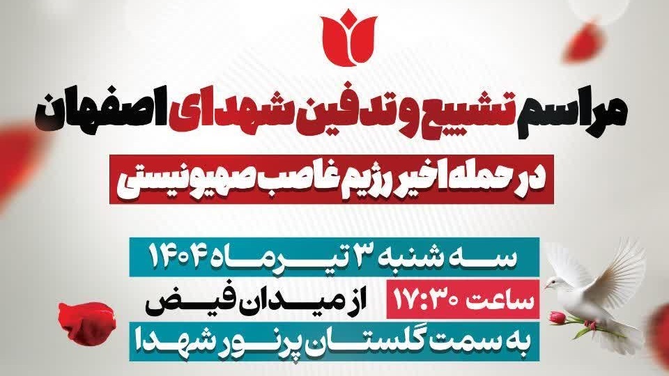 صدا و سیما/ مراسم تشییع پیکر شهدای تجاوز رژیم صهیونیستی امروز در اصفهان برگزار میشود.