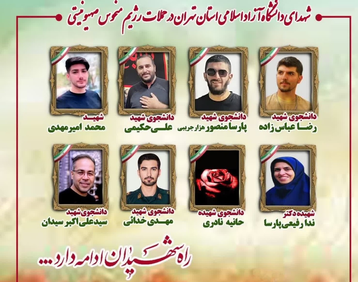 اسامی ۸ شهید دانشگاه آزاد استان تهران در حملات رژیم صهیونیستی