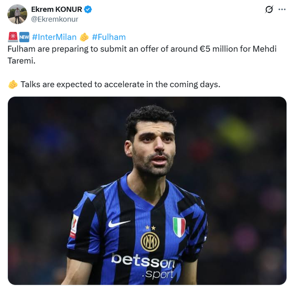 اکرم کونور، خبرنگار ترک امروز(چهارشنبه) از آمادگی باشگاه فولام انگلیس برای ارائه پیشنهاد ۵ میلیون یورویی برای خرید مهدی طارمی خبر داد.