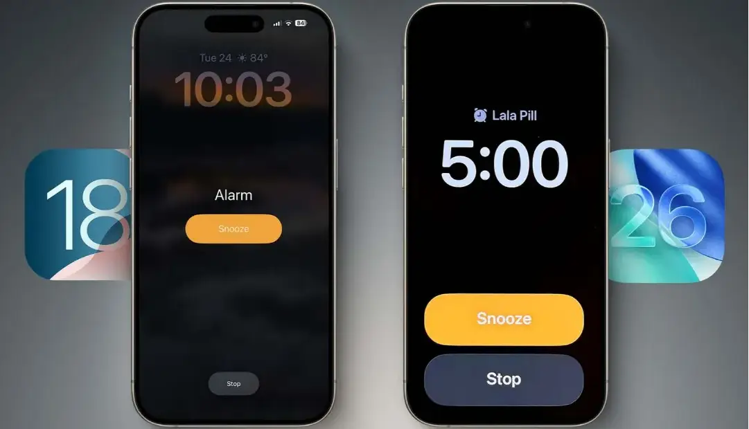 بهگزارش مکرومرز، اپل در جدیدترین نسخهی بتای iOS 26 صفحهی آلارم گوشی آیفون را دستخوش تغییر کرده است. اکنون نشاندهندهی زمان بهصورت بزرگ در مرکز و دکمههای Stop و Snooze بهصورت هماندازه در پایین نمایشگر قرار گرفتهاند.
