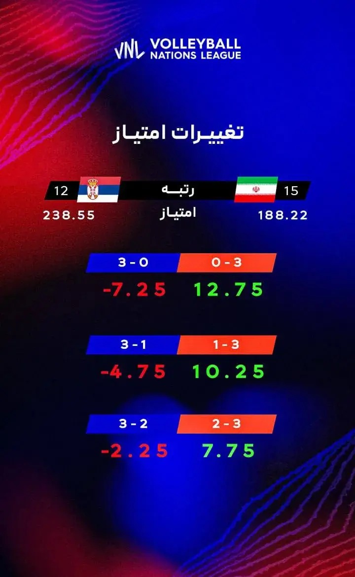 تغییرات امتیازی دیدار ایران و صربستان در رنکینگ جهانی