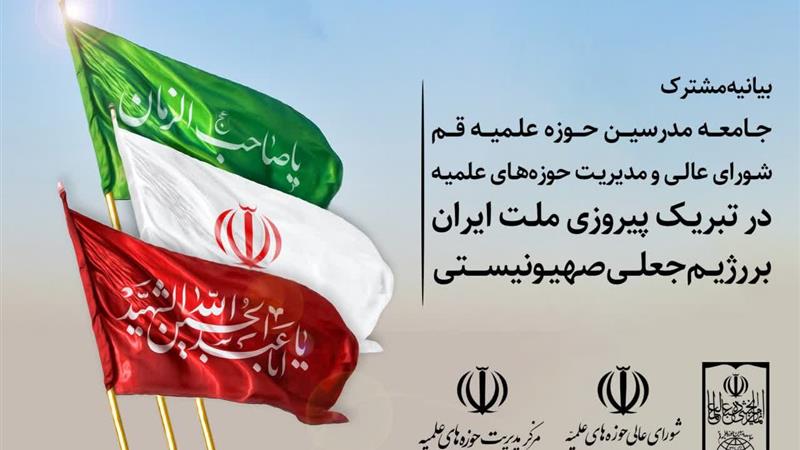 بیانیه ادامه یافتهاست: بیتردید این پیروزی در سایه هدایتهای حکیمانه رهبر فرزانه انقلاب اسلامی، حضرت آیتالله العظمی امام خامنهای (مدظلهالعالی) و حمایتهای مراجع عظام تقلید (حفظهمالله)، علمای بزرگ اسلام و حوزههای علمیه حاصل شد.