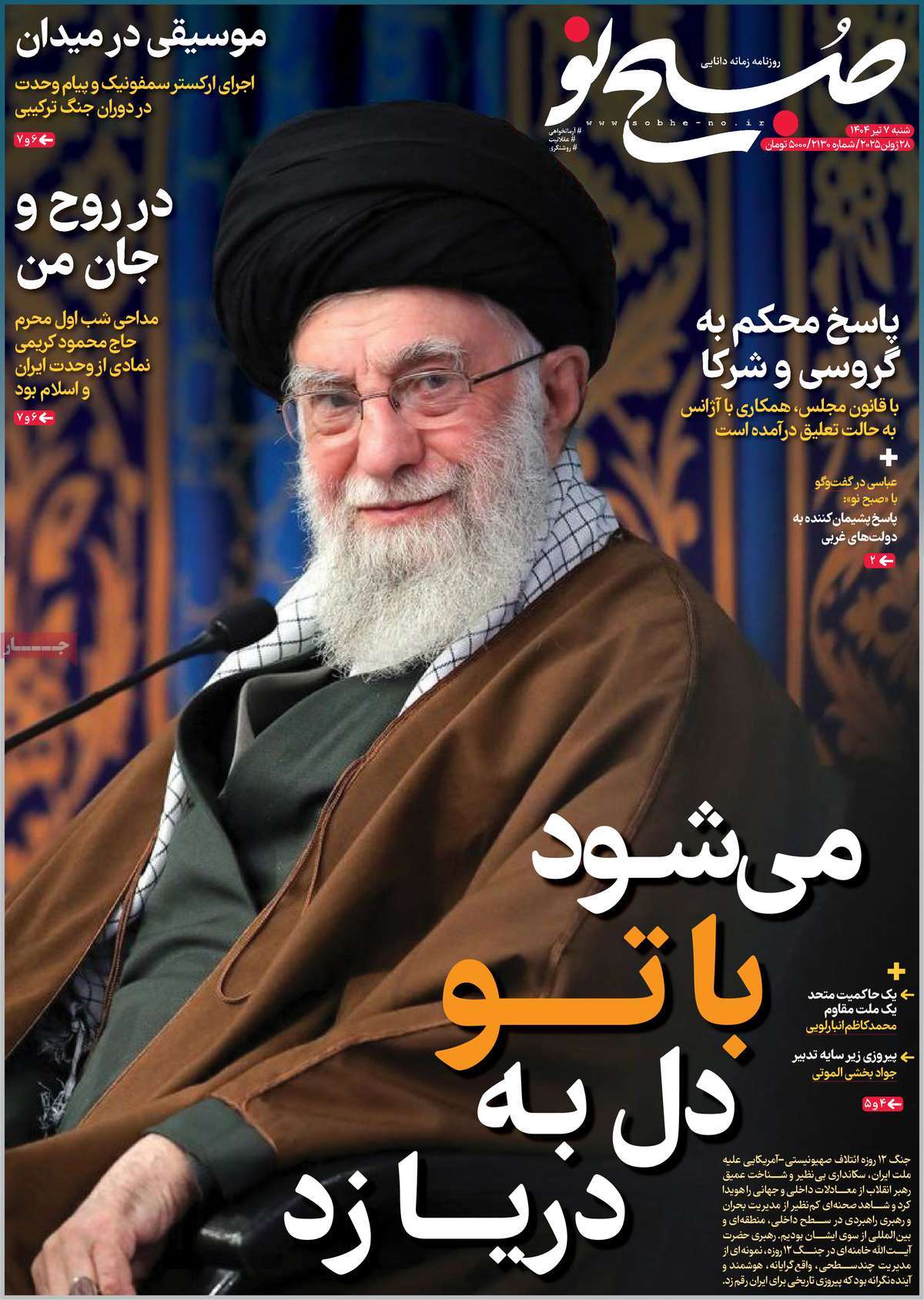 صفحه اول روزنامه صبح نو شنبه ۷ تیر