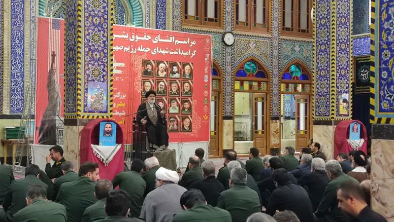 در این مراسم امام جمعه بافق با گرامیداشت یاد و خاطره شهیدان به مهمترین اهداف دشمنان برای رسیدن ضربه زدن به نظام و انقلاب اشاره کرد و مهمترین آن را استفاده از رسانه های گروهی و جنگ روایت ها ذکر کرد.
