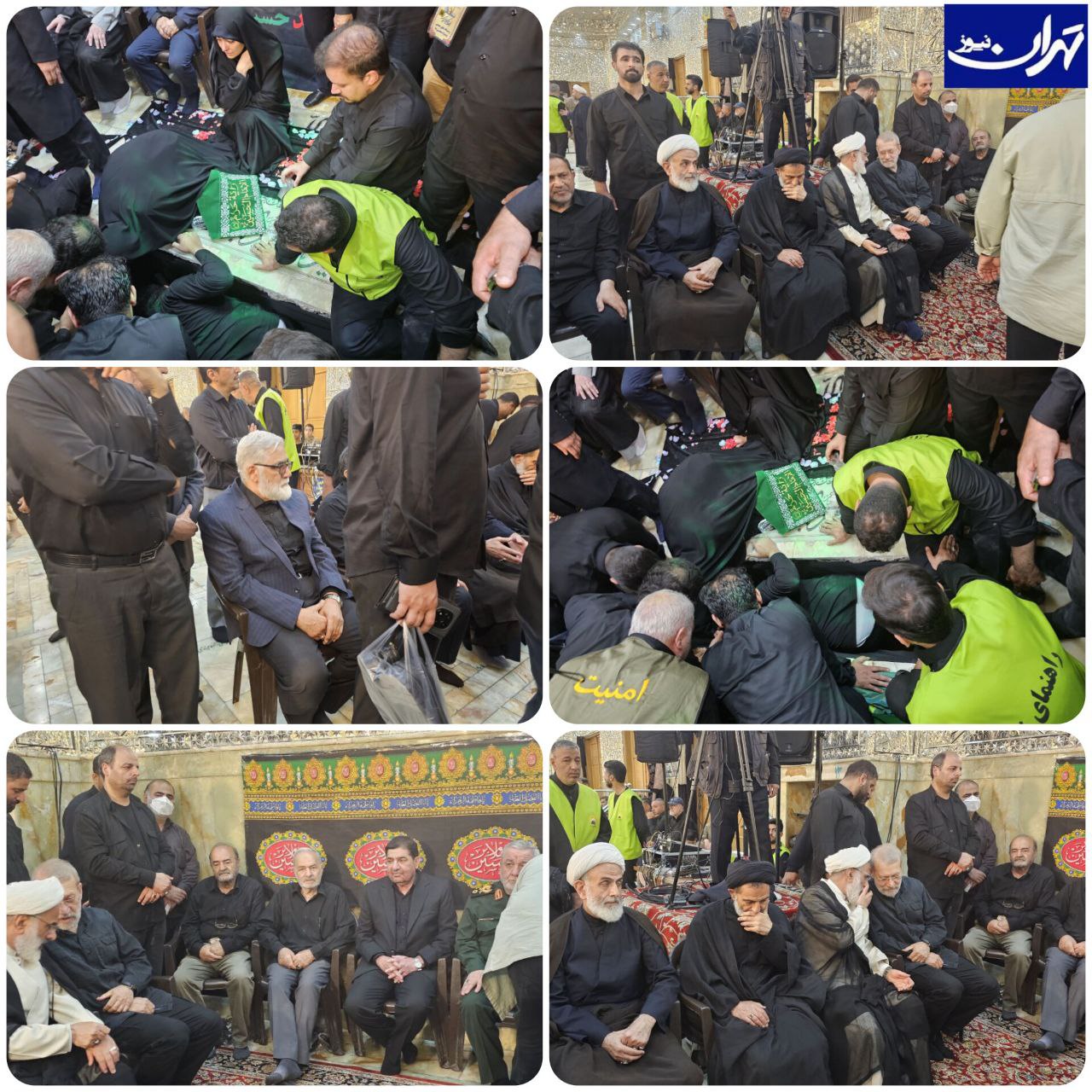 مخبر، پوردستان، لاریجانی، سردار اشتری، حاجی صادقی، سردار جباری و سایر مسئولان لشکری و کشوری در مراسم تشییع و تدفین شهید سرلشکر سلامی در حرم مطهر سیدالکریم حضور یافتند.
