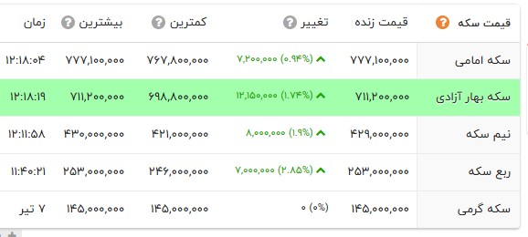 قیمت طلا و انواع سکه را در جدول زیر مشاهده می کنید.