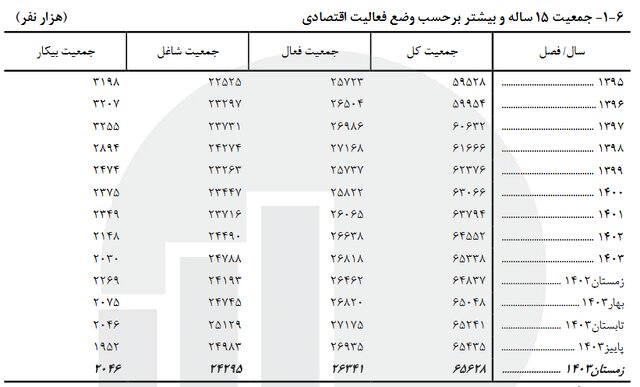 بررسی دادهها نشان میدهد که جمعیت فعال این گروه سنی در سه ماهه چهارم سال ۱۴۰۴، ۲۶ هزار و ۳۴۱ نفر بود که نسبت به سه ماهه سوم(پاییز) ۵۹۴ نفر کاهش یافته است.