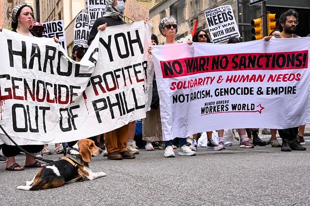 نوزده سازمان مردمی مخالف جنگ، متشکل از بیش از ۱۵۰ نفر روز شنبه ۲۸ ژوئن در ساختمان شهرداری فیلادلفیای آمریکا گرد هم آمدند تا تصمیم متجاوزانه واشنگتن برای بمباران ایران در ۲۱ ژوئن را که نقض قوانین بینالمللی است، محکوم کنند.