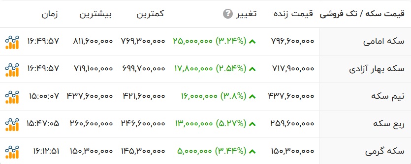 قیمت طلا و انواع سکه را در جدول زیر مشاهده می کنید.