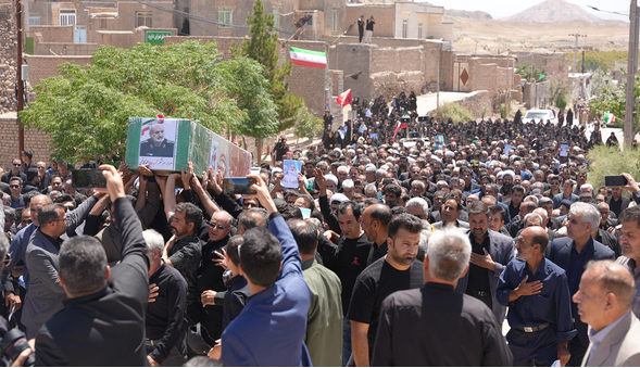 فارس/ مراسم تشییع نمادین پیکر شهید سرلشکر محمد کاظمی، رئیس سازمان اطلاعات سپاه، با حضور وزیر آموزشوپرورش، استاندار خراسان جنوبی، فرمانده سپاه استان و جمعی از مسئولان استانی و شهرستانی در زادگاهش روستای افین برگزار شد.