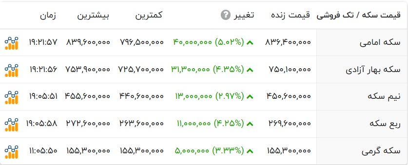 قیمت طلا و انواع سکه را در جدول زیر مشاهده می کنید.