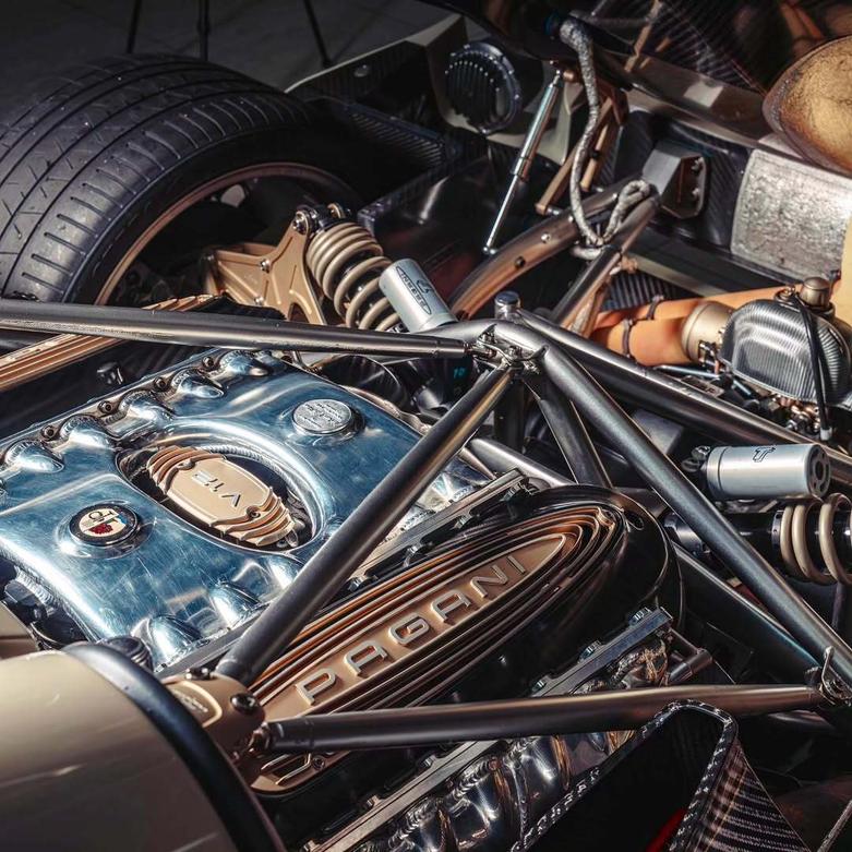 سیستم تعلیق آلومینیومی فورجکاری شده یوتوپیا، حاصل تجربیات پاگانی از توسعه هوایرا R (مدل مخصوص پیست) است. موتور M158 توئینتوربوشارژ V12، که توسط مرسدس-AMG طراحی و ساخته شده، اکنون ۸۵۲ اسب بخار قدرت در ۶۰۰۰ دور در دقیقه و ۱۱۰۰ نیوتن متر گشتاور در بازه ۲۸۰۰ تا ۵۹۰۰ دور در دقیقه تولید میکند. این موتور خشک، تنها ۲۶۲ کیلوگرم وزن دارد.