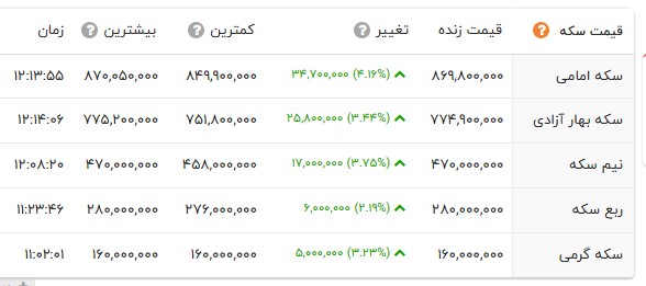 قیمت طلا و انواع سکه را در جدول زیر مشاهده می کنید.