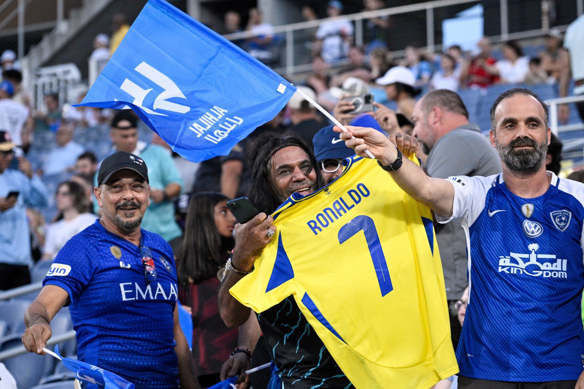 پیراهن کریستیانو رونالدو در دست هوادار الهلال در بازی با منچسترسیتی