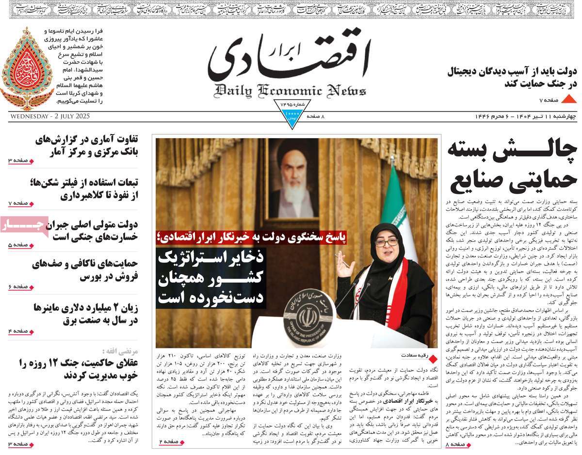 صفحه اول روزنامه ابرار اقتصادی چهارشنبه ۱۱ تیر