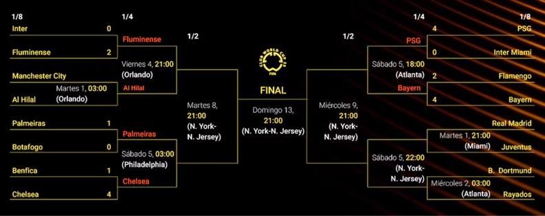 در سمت دیگر جدول، اوضاع سادهتر به نظر میرسد. پیروزی غیرمنتظره فلومیننسه برابر اینترمیلان (۱-۰) و شکست منچسترسیتی مقابل الهلال (۴-۳) باعث شد تا یک دیدار غیرمنتظره بین تیمهای عربستانی و برزیلی در یکچهارم نهایی شکل بگیرد. بازی جمعه شب برگزار خواهد شد..