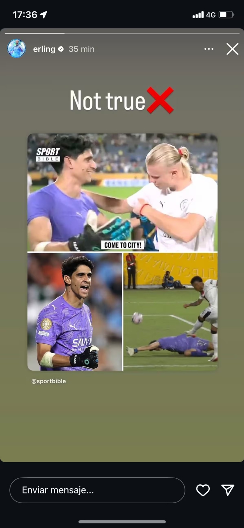 ورزش 3/مهاجم نروژی پس از نمایش درخشان دروازهبان مراکشی مقابل منچسترسیتی، به او تبریک گفت، اما درخواست پیوستن به تیمش را تکذیب کرد.