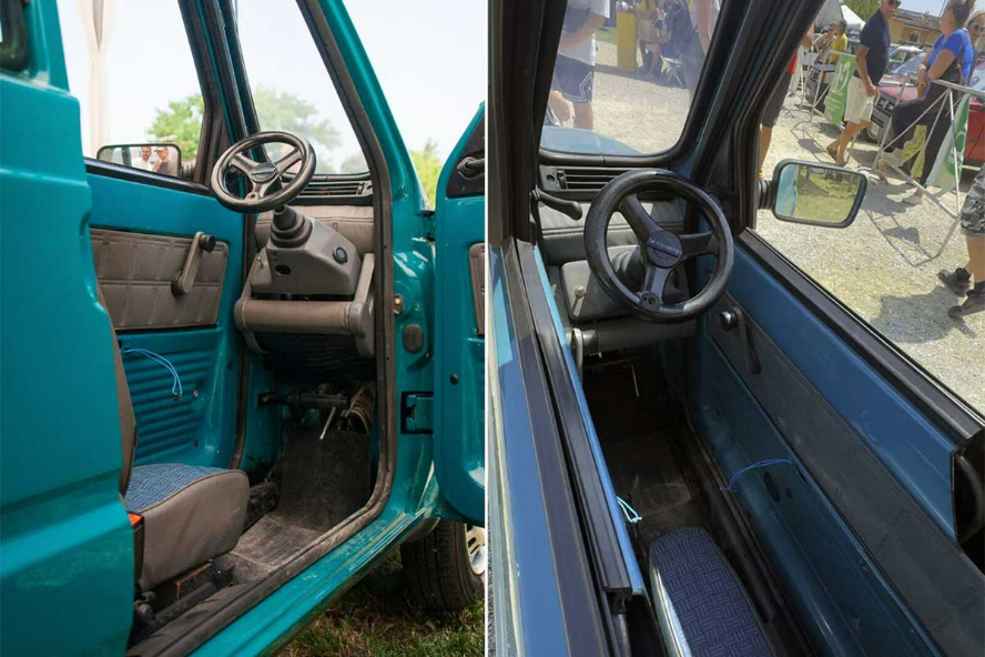 نتیجه، خودرویی است که هرچند هنوز میتوان اصل آن را تشخیص داد اما چنان عجیب است که ذهن را به چالش میکشد. برای درک دقیق عرض این خودرو، کافی است بدانید که تنها کمی عریضتر از یک چراغ جلوی اصلی پاندا است. از نظر فنی، این خودرو برای دو نفر طراحی شده اما در واقعیت، صندلی سرنشین به دلیل فضای اشغالشده توسط گلگیرها غیرقابلاستفاده است. صندلی راننده هم بسیار باریک است، اما آندریا میتواند در آن بنشیند و با آرنجهای بیرونزده از پنجرههای باز رانندگی کند.