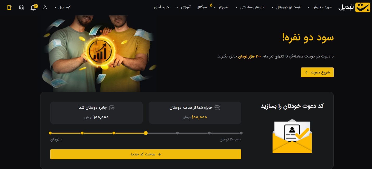 ad/ در جشنواره «سود دو نفره»، با دعوت دوستان معاملهگر خود به صرافی تبدیل، بدون محدودیت درآمد کسب کنید.
