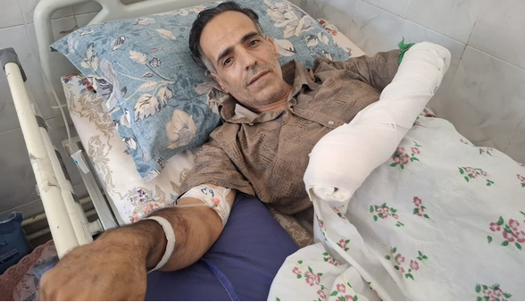 مرتضی قنبری، که از بستریبودن روی تخت بیمارستان در فصل برداشت محصول خسته و کلافه است، زمانی مجروح شد که مشغول سرویس ماشین کمباین در جهاد کشاورزی اشترینان بود؛ در همان لحظه، رژیم جنایتکار اسرائیل به این مجموعه حمله موشکی کرد، بسیاری را مجروح ساخت، سیلوهای گندم را نابود کرد و زیرساختهای اداره را از بین برد.