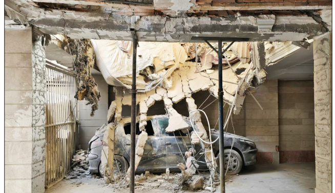 عروسک باربی نصف شده، پاهایش کنده شده. جعبه کادوی قلب صورتی کف اتاق افتاده، درش چند متر آنسوتر شکسته و له شده. هدفون صورتی آن سوی هال مطمئنم میکند این خانه دختربچهای داشته که خیلی از وسایل روی زمین متعلق به او بوده. از اهالی خانه خبری نیست. کتاب، جزوه، دفتر مشق، دامن زنانه، لباس اهالی خانه که کپه شدهاند روی هم، اینها و هزاران تکه از وسایل زندگی آدمهای خانه روی زمین، لای خاک و خل، لای آجر و سنگ و میلگرد، لای گرد سفیدی که پاشیده شده روی همهچیز، ولواند. از اینکه باید پایم را روی وسایل یک خانواده بگذارم که تا چند روز پیش اینجا راه میرفتند، حرف میزدند، غذا میخوردند، میخوابیدند، حس بدی دارم. با احتیاط بین نخالههای ساختمانی راه میروم که تیزی به پایم نرود. شلوار تیرهام از حجم خاک سفید شده.