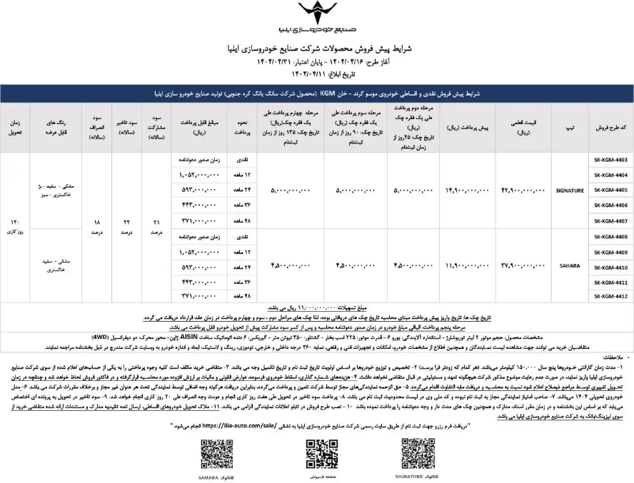 / صنایع خودروسازی ایلیا به تازگی شرایط فروش جدید پیکاپ موسو گرند خان را با افزایش محسوس قیمت اعلام کرده است.