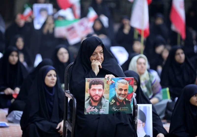 مردم حاضر در این مراسم با شعارهای « مرگ بر آمریکا»، « مرگ بر اسرائیل» و « هیهات منالذله» تأکید کردند که دشمن قدار نمیتواند با به شهادت رساندن فرماندهان، دانشمندان و زنان و کودکان، ایران اسلامی را به زانو درآورد.