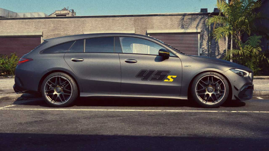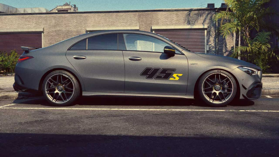 مرسدس چند ماه پیش نسل جدید CLA را معرفی کرد و حالا آماده خداحافظی با مدل قبلی است. در همین راستا، نسخه ویژه CLA45 S فاینال ادیشن رونمایی شده است. این نسخه ویژه که اوایل سال آینده راهی بازار خواهد شد، از بدنهای به رنگ خاکستری مات گرافیکهای سیاه و زرد روی درهای جلو و کاور آینهها بهره میبرد. اینتم دورنگ در رینگهای ۱۹ اینچی فورجکاری شده نیز به چشم میخورد. از دیگر ویژگیهای برجسته میتوان به درپوش باک کروم نقرهای و کالیپرهای ترمز مشکی براق با نشان سفید AMG اشاره کرد.