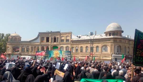 حاضران ضمن پیمودن مسیر میدان امام خمینی (ره) تا انتهای خیابان شهدا، شعار "مرگ بر اسرائیل"، "مرگ بر آمریکا" و "حسین حسین شعار ماست شهادت افتخار ماست" را سردادند.
