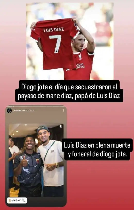 این خشم تنها از سوی هواداران لیورپول نبود، بلکه کلمبیاییها نیز واکنشی منفی نشان دادند. بسیاری این رفتار را بیاحترامی تلقی کردند، مخصوصاً با توجه به این که در زمان گروگانگیری پدر لوئیس دیاز، ژوتا با نشان دادن پیراهن او پس از گلزنی در آنفیلد حمایتش را از این بازیکن ابراز کرده بود و این حرکتی بود که در حافظه بسیاری باقی مانده است.