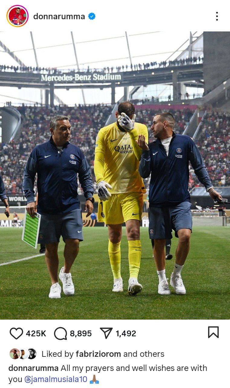 جانلوییجی دوناروما، دروازهبان پاری سن ژرمن، پس از مصدومیت شدید جمال موسیالا در جریان دیدار برابر بایرن مونیخ، با انتشار پیامی احساسی در اینستاگرام، نسبت به این اتفاق واکنش نشان داد.