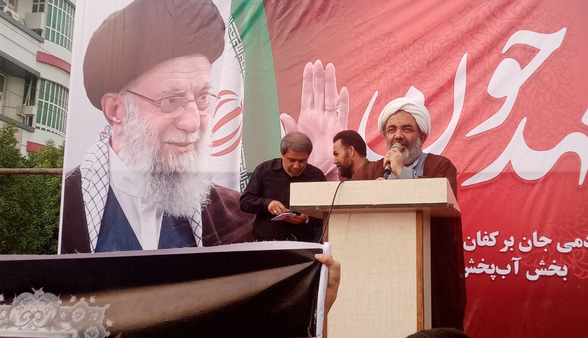 حجتالاسلام خداداد رضایی امام جمعه آبپخش در تجمع عاشورایی حمایت از ولایت و مراجع شیعی اظهار داشت: اجتماع عاشورائیان بخش آب.پخش به تناسب وضعیت موجود حال و هوای دفاع از حریم ولایت دارد و ما امروز اعلام میکنیم آماده هستیم که به ندای هل من ناصر ینصرنی امام زمان خود پاسخ مثبت بدهیم و تبعیت محض از فرامین نائب امام زمان(عج) یعنی ولی امر مسلمین را اعلام داریم و خدمت رهبر و مقتدایمان عرض کنیم اگر در روز عاشورا ندای امام حسین علیه السلام بیپاسخ ماند، ما ملت ایران نمیگذاریم بار دیگر تاریخ تکرار شود و ندای حسین زمان بیپاسخ بماند.