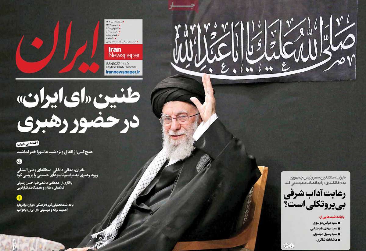 صفحه اول روزنامه ایران دوشنبه ۱۶ تیر