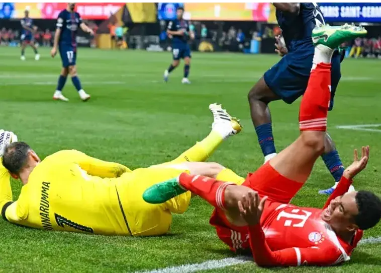 با بدشانسی، بازیکن آلمانی نتوانست پای چپش را به موقع کنار بکشد و دروازهبان با بدنش باعث شکستگی استخوانهای ساق، نازکنی و مچ پای او شد. بازیکن بایرن روی زمین افتاد و همه در زمین از شدت این اتفاق برای موسیالا شوکه شدند.