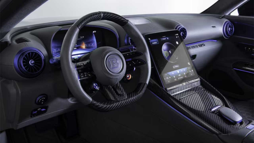 نسخه دیپ بلو همچنین از رینگهای جدید و انحصاری مونوبلاک پلاتینوم ادیشن ۲۱ اینچ در جلو و ۲۲ اینچ در عقب بهره میبرد. این رینگها با طراحی پنجپره نهتنها ظاهری جذاب دارند، بلکه هوای خنک را به سمت ترمزهای اختصاصی برابوس هدایت میکنند. استفاده گسترده از فیبر کربن و کفپوشهای سبکوزن، وزن خودرو را به زیر ۲۳۲۰ کیلوگرم کاهش داده، هرچند برابوس عدد دقیق آن را اعلام نکرده است.