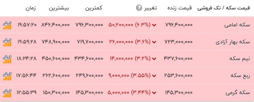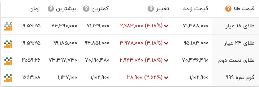 قیمت طلا و انواع سکه را در جدول زیر مشاهده می کنید.