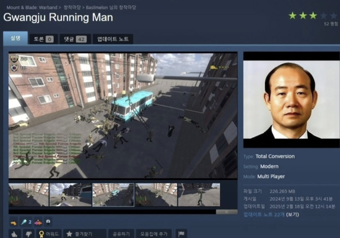 ماد مورد نظر یک ماد تغییر کلی (total conversion) ساخته طرفداران برای بازی Mount & Blade: Warband است که در صفحه Steam Workshop این بازی بارگذاری شده بود. این ماد که Gwangju Running Man نام دارد، فضای قرونوسطایی بازی را به بازسازیای مدرن از جنبش دموکراسیخواهی گوانگجو در کره جنوبی تبدیل میکرد.